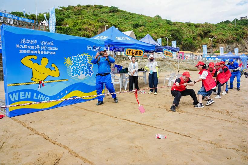 图为台州志愿者在净滩后开展“碧海拔河赛”