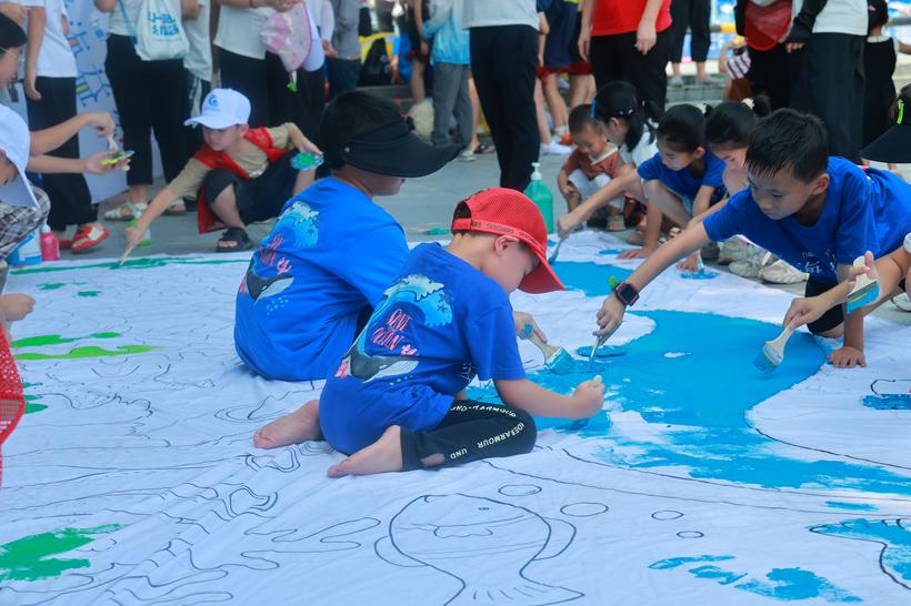 图为阳江少年志愿者共同“彩绘海洋”