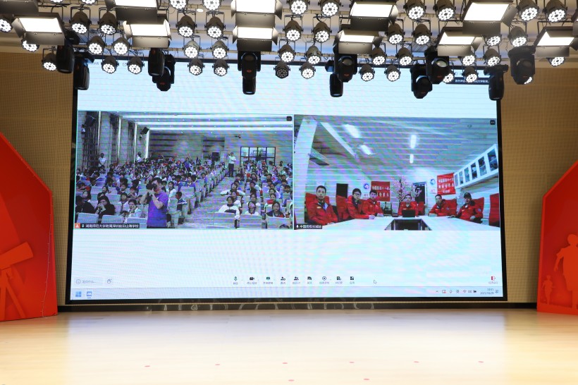 活动现场,学生们还同第41次南极考察队长城站站长、中国极地研究中心副研究员邵和宾与6名越冬队员进行实时视频连线。互动环节中,科考队员们现场详细的解答了学生们的提问。