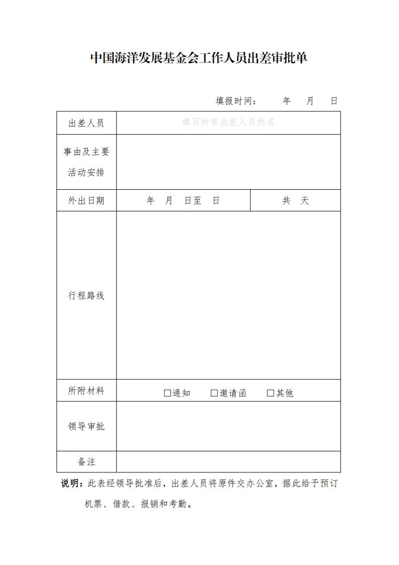 第一条 为提高中国海洋发展基金会(以下简称基金会)人员出差效能,规范出差审批及差旅费报销程序,参照中央和国家机关人员差旅费相关规定,结合基金会实际,特制定本办法。