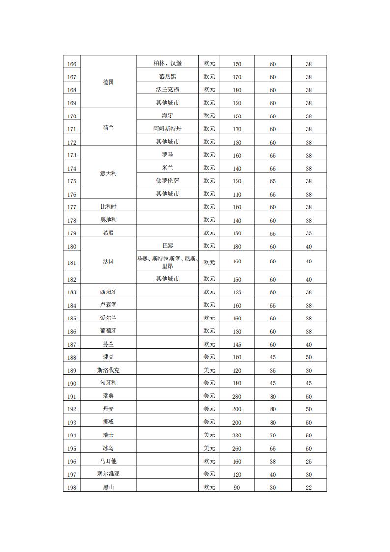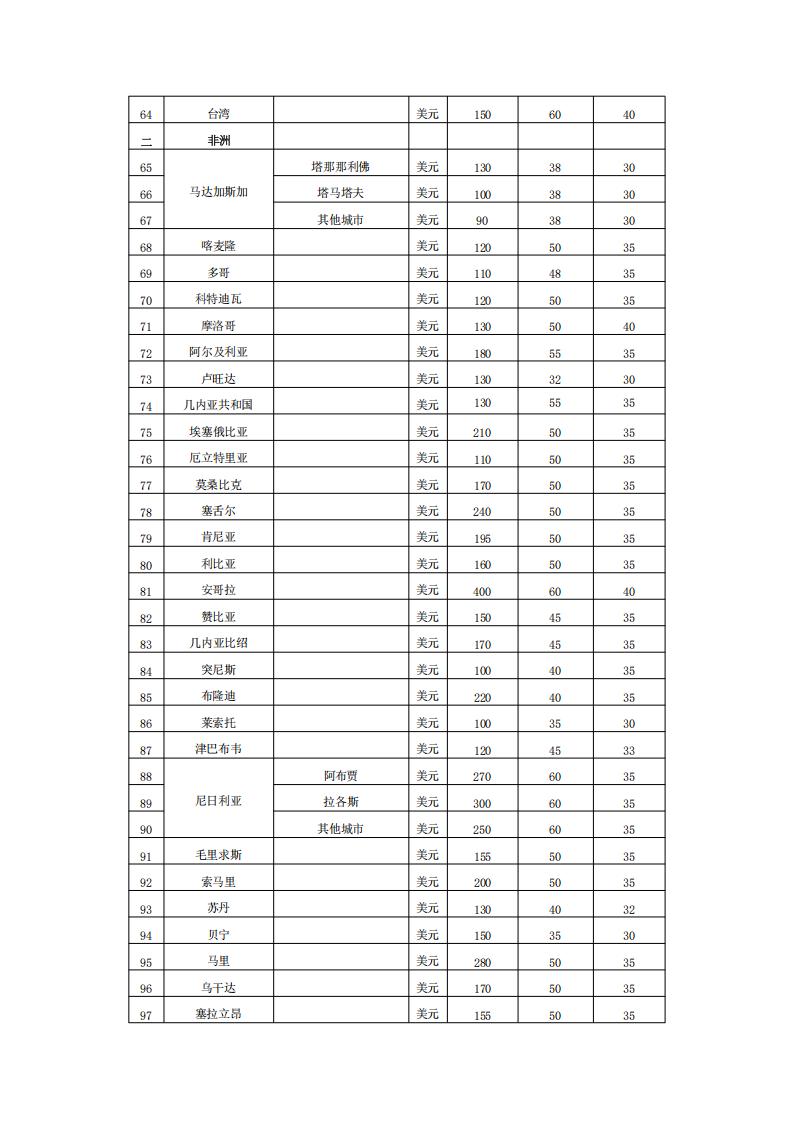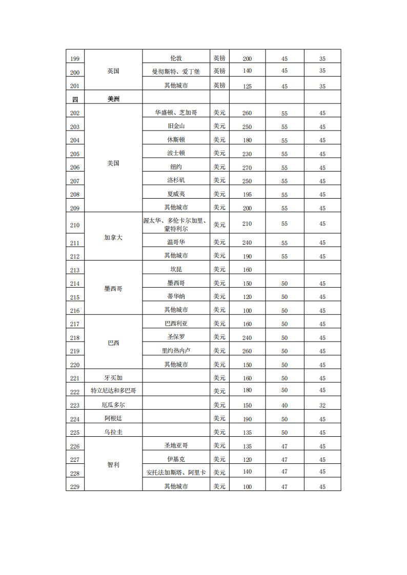 第十一条 出国经费包括:国际旅费、国外城市间交通费、住宿费、伙食费、公杂费和其他费用。费用标准统一按照财政部颁布的标准执行。