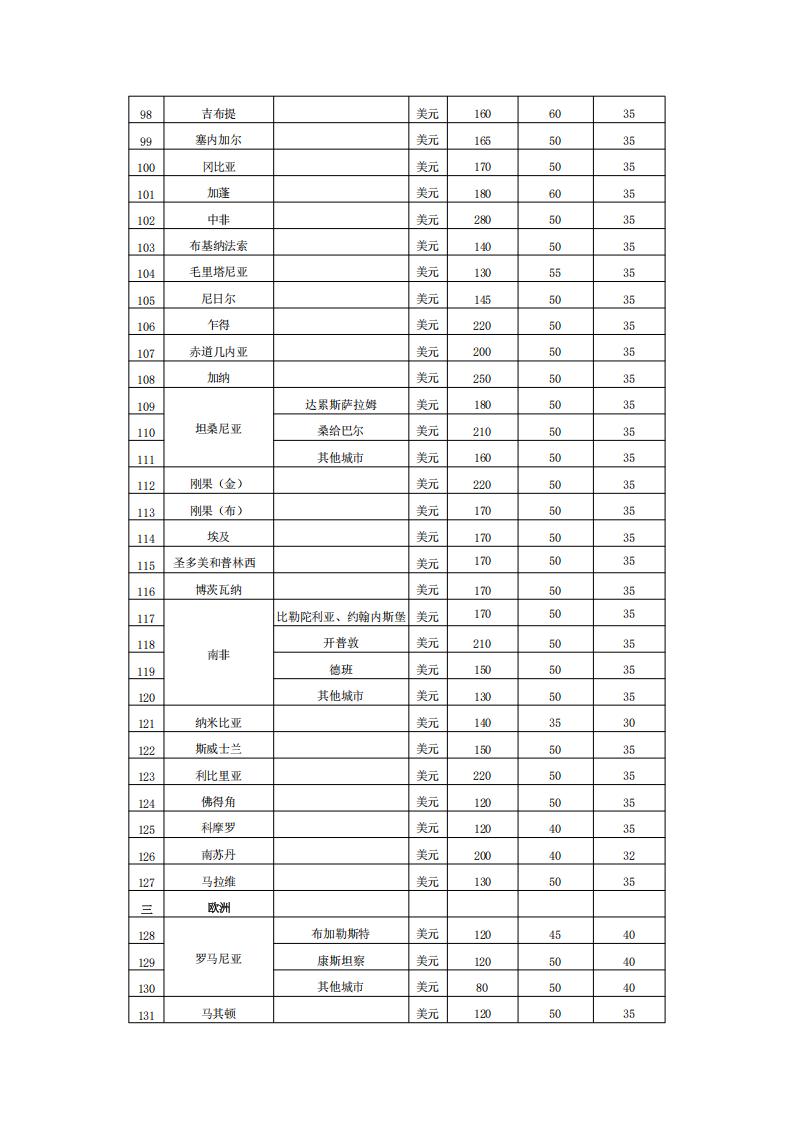 (六)出国人员乘坐国际列车,国内段按国内差旅费的有关规定执行;国外段超过6小时以上的按自然(日历)天数计算,每人每天补助12美元。